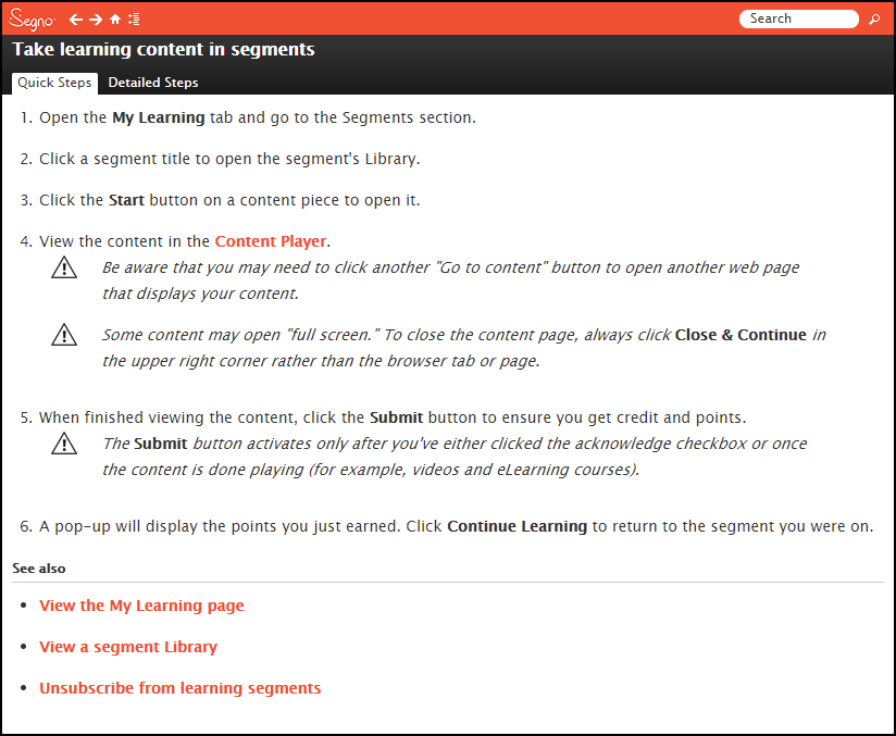 Written and developed to fully integrate into a Learning Management System (LMS) workflow so that users had the help they need at the moment they needed it. Tools: Ontuitive Learning Guide Manager, MS PowerPoint, SnagIt.